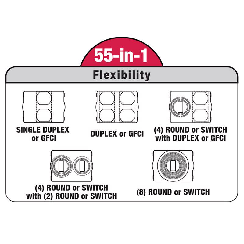 Sigma's Weatherproof Two-Gang While-In-Use Cover is configurable for two GFCI, duplex, round or switch devices. The cover is 3-1/8" deep so the outlet can be utilized while the cover is closed in wet and damp locations. The corner hinge allows for vertical and horizontal installations and the cover is lockable to restrict unwanted access.
