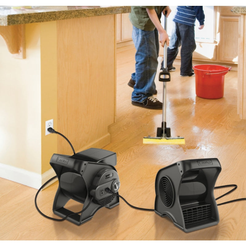 Lasko pivoting pro blower fan is a unique, multi purpose, pivoting utility fan that is ideal for use in tight spaces where fresh air is essential, such as work spaces, attics, basements and garages. Packed with features to help at the worksite, it is equipped with a patented pivoting action allows you to direct the airflow right where you need it from drying wet floors to exhausting the air from a newly painted ceiling and anywhere in between. Three high velocity speeds and a focused airstream bring powerful performance. Includes 2 additional outlets, a circuit breaker with reset and a grounded plug for safety and convenience. Comes fully assembled. ETL listed.