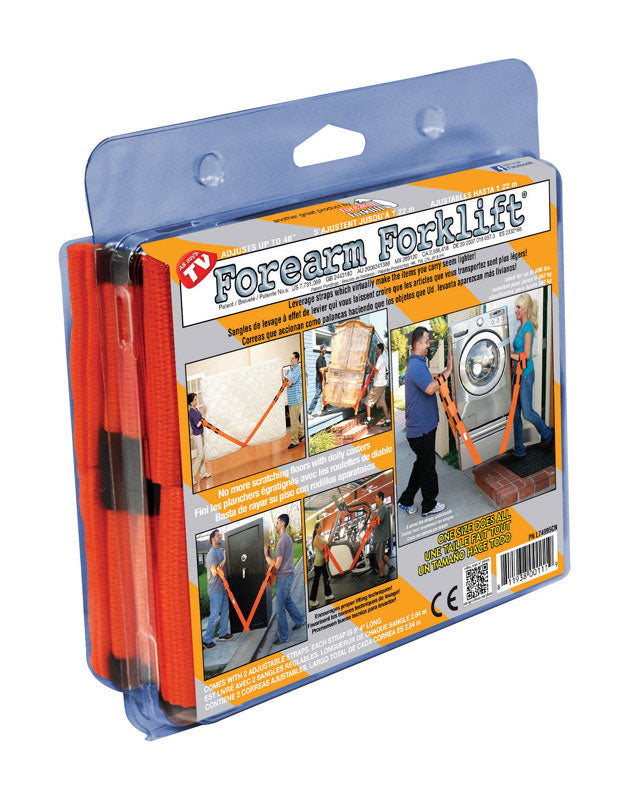 The Forearm Forklift moving straps offer a durable, reliable and convenient way to make moving heavy or unwieldy objects simpler and more efficient. This set of moving lifting straps features a super strength webbing construction that helps to prevent tearing, wearing and other damage, as well as soft felt padding that helps to provide comfort during use and prevents scuffing of carried items. Additionally, the forearm Forklift straps feature illustrated instructions to allow for immediate use.