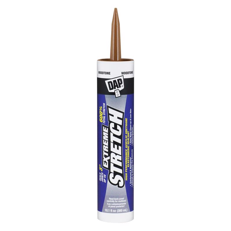 Dap Extreme Stretch Woodtone is a premium urethanized sealant ideal for sealing a wide variety of interior & exterior surfaces. It is specially formulated to stretch over 600% ensuring seal does not crack or lose adhesion. The unique formula of Extreme Stretch is easy to apply & tool, low in odor and it cleans up easily with water, making it perfect for most sealing projects including windows, doors, trim, siding, gutters, flashing, sinks and countertops.