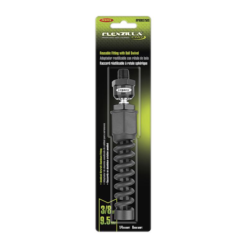 Flexzilla Anodized Aircraft Aluminum Reusable Ball Swivel 3/8 in. Male X 1/4 in. Male 1 pc (RP900375BS)