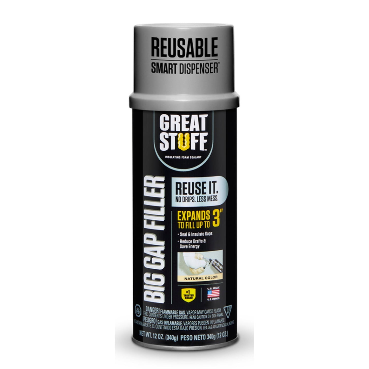Great Stuff Big Gap Filler Insulating Foam Sealant is a ready to use expanding polyurethane insulating foam sealant that fills, seals and insulates gaps up to 3 inches. The average home has a half mile of gaps and cracks where air and moisture can enter. Air sealing and insulating projects around the home can typically save homeowners up to 30% on home energy costs, according to the Residential Energy Services Network (RESNET). Seal out energy loss and improve comfort with Great Stuff Big Gap Filler Insulating Foam Sealant. Great Stuff expands to take the shape of gaps, creating a long lasting, airtight and water resistant seal. It's a simple way to minimize unwanted air flow and reduce condensation. New Smart Dispenser design eliminates mess and product waste by providing a precise application with no drips. The application is maneuverable and intuitive to use with a simple, trigger gun which saves time. The Smart Dispenser allows the user to reuse Great Stuff for up to 30 days.