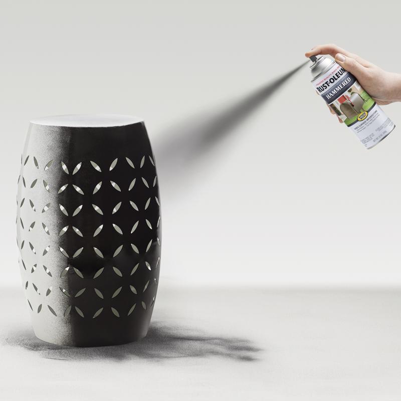 Want to paint a dinged up, rusty surface - without sanding or priming. No problem. Rust-Oleum Hammered Spray Paint adheres directly to rust and instantly hides flaws and imperfections with its modern, glossy, hammered finish. Perfect for old wheelbarrows, wheel rims, patio furniture, railings and more.