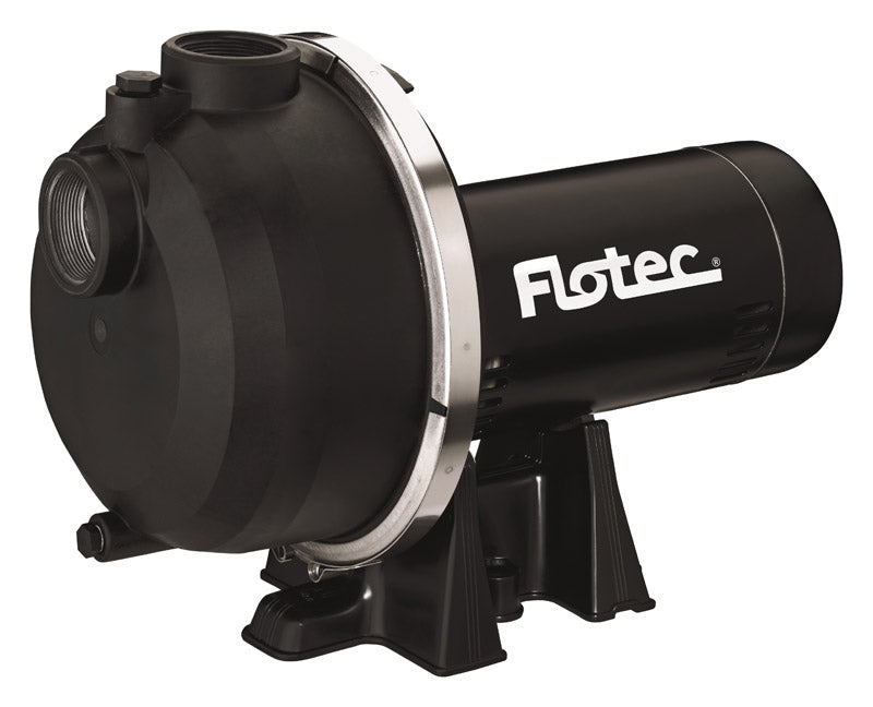 The Flotec 1 HP High-Capacity Sprinkler Pump has a dual-voltage motor for high output and can lift water. This pump has a durable, fiberglass-reinforced thermoplastic housing. The pump is corrosion-resistant and self-primes after the housing is initially filled with water.
