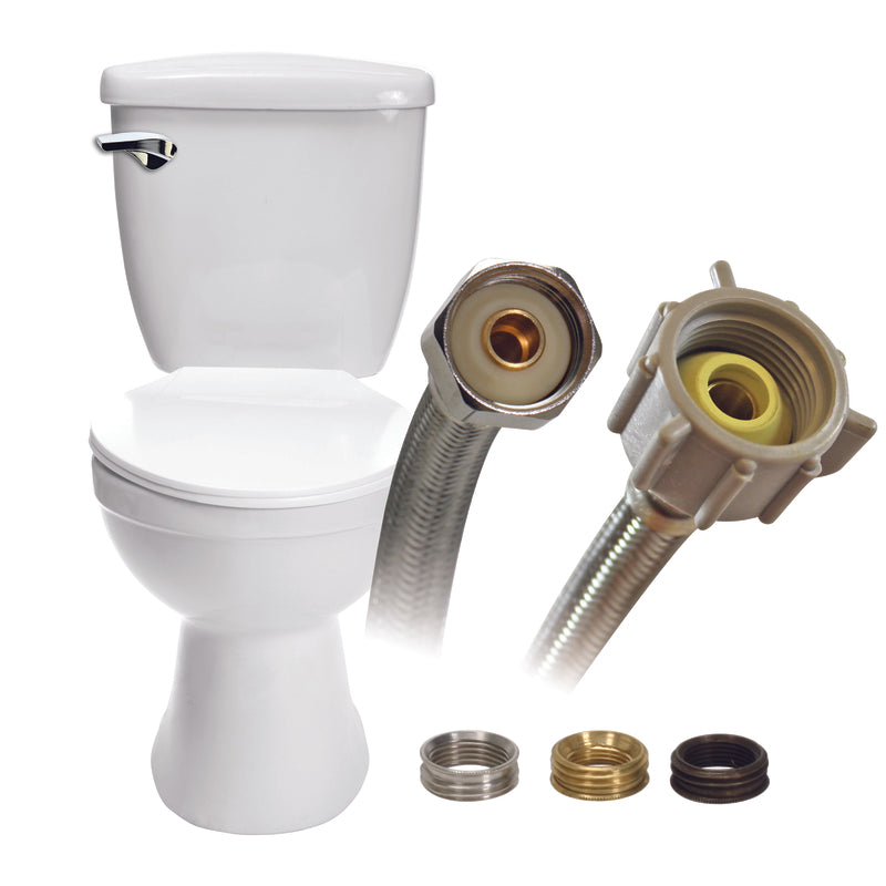 Fluidmaster Fits-All toilet connectors are designed to fit all toilets and water supply lines. Featuring water supply fit adaptors to offer a perfect fit for most any connection. Built to last from durable braided stainless steel, these toilet supply lines are highly flexible for fast and easy installation. Lead free and meeting all code requirement for flexible water connectors.