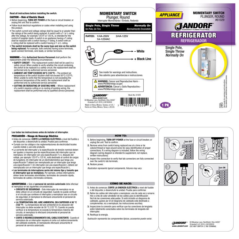 Jandorf 1 amps Single Pole Momentary Appliance Switch White 1 pk (61029)