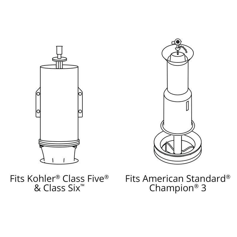 Repair your leaking or running American Standard Champion 3, Kohler Class Five or Kohler Class Six toilets. The Korky universal 3 inch valve seal kit contains two premium, longest lasting seals to repair your champion, class five or class six flush valve. Proven longest lasting, the valve seal kit is backed by a 5 year warranty. Replaces: American Standard seal: 738651-0070A & Kohler Seal: GP1059291.