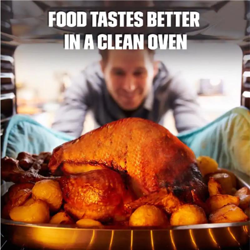 Easy-Off Fume Free Oven Cleaner cleans tough baked-on spills in just 30 seconds. It releases absolutely no caustic fumes into the air so it's perfect for spot-cleaning and everyday use. Safe for self-cleaning ovens, just spray on the stain and wipe away. No gloves required.