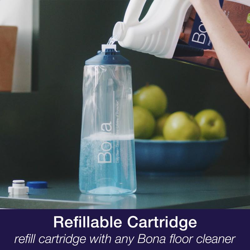 The next-generation Bona Premium spray mop for hardwood floors is an all-in-one solution to clean and reveal the natural shine of your floors. Includes Bona's waterbased residue-free cleaner in a refillable cartridge and a washable microfiber pad. Cleans hardwood floors effectively by removing dust, dirt and grime revealing beautiful floors. The extra-large mop head delivers quick and effective cleaning and the flexible rubber corners protect baseboards and furniture from dings and scratches.