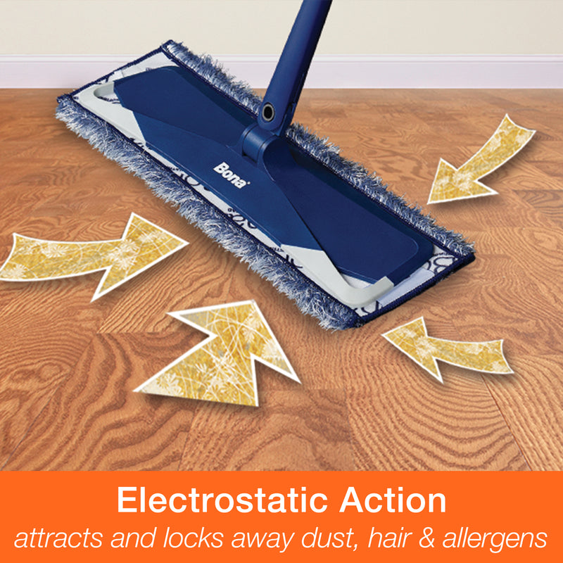 The Bona Microfiber Dusting Pad reaches wherever dust settles. Designed to attract and lock away dust, pet hair, micro-particles, and common household allergens from your floors' surface. Use with the Bona Family of Mops on both hardwood and hard-surface floors.
