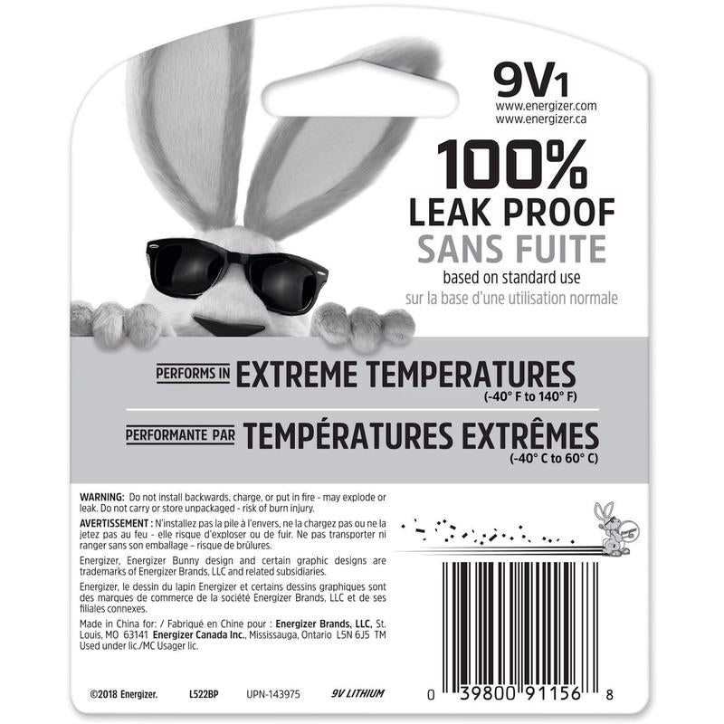 Energizer innovation delivers up to 10-year battery backup in AC-powered smoke detectors. This 9-volt lithium battery lasts up to 20 percent longer in toys vs. Energizer MAX batteries and weighs 1/4 less than standard alkaline. It performs in extreme temperatures from negative 40 to 140 degrees Fahrenheit and is made of leak-resistant construction.