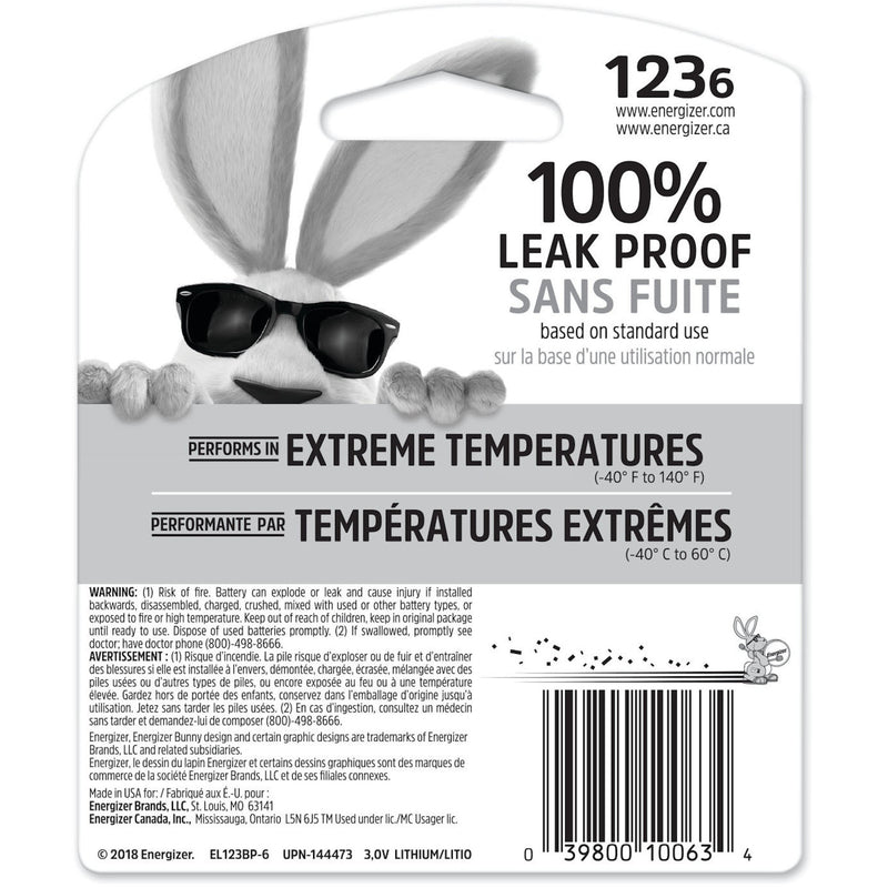 Energizer Lithium 123 3 V Camera Battery 6 pk (EL123BP-6)