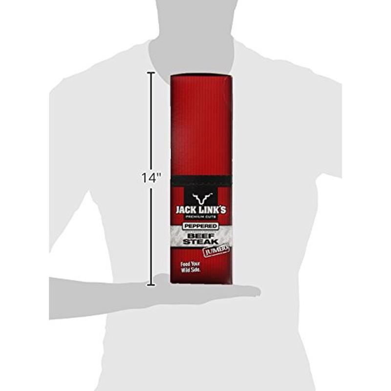 This Jumbo Peppered Beef Steak contains two-ounces of peppered flavor beef steak (24 total ounces per display). This satisfying snack has 26 grams of protein to keep you full, while being only 130 calories and low in fat, sugar, and carbs.