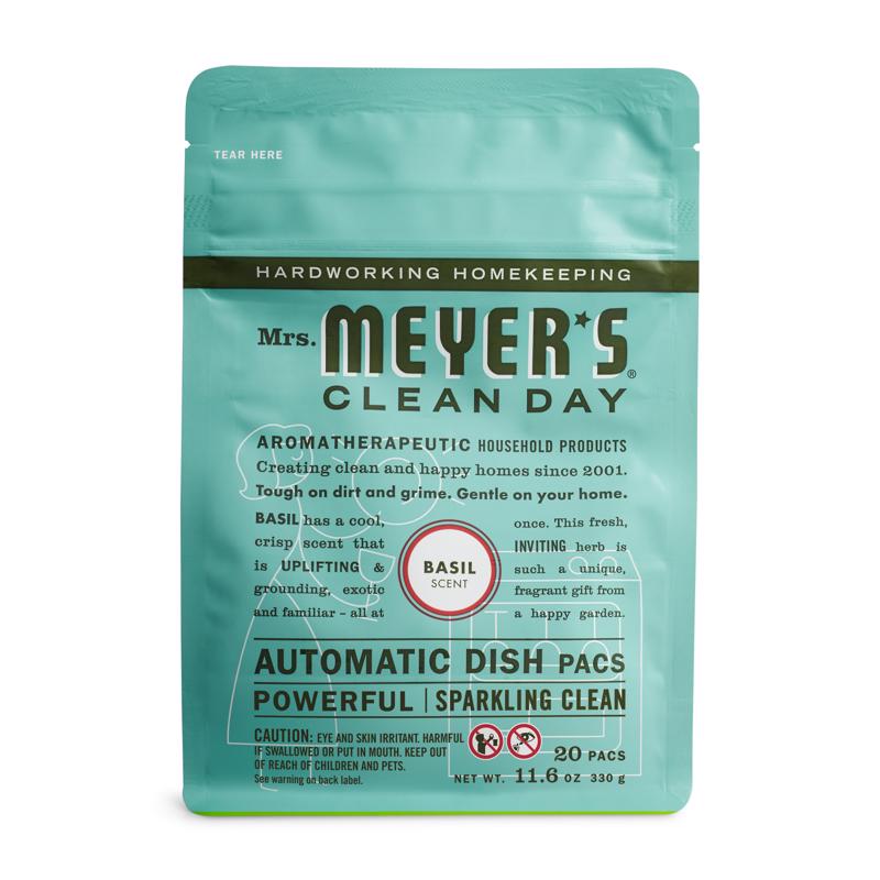 Mrs. Meyers Clean Day Automatic Dish Pacs feature hardworking detergent cleaning agents, while also providing a special, singular scent for your entire home. Each dishwasher pod loads easily in the dishwasher's soap cup and is safe for use in all machines. Clean coffee and tea stains from cups without phosphates or chlorine. Convenient dishwasher packets leave dishes sparkling clean. 20 pacs per package.