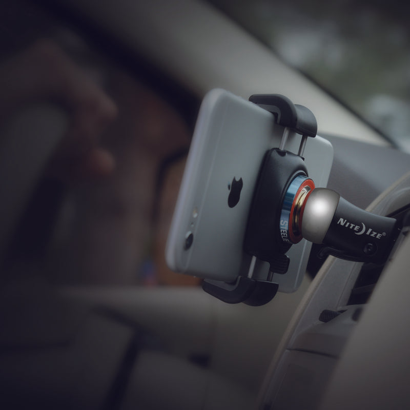 Next time you hit the road, stay hands-free by locking your smartphone into the Steelie free mount vent kit. This universal kit works with most types of vehicle vents and most any phone on the market. The free mount arms can be adjusted to hold phones in place with a firm squeeze and the release button on the back makes it easy to remove your phone with a smooth one-handed motion. The vent mount is a portable solution that can be moved easily from car to car by simply unsnapping the strong cam locking lever, then clicking it back in place on the next vehicle vent.