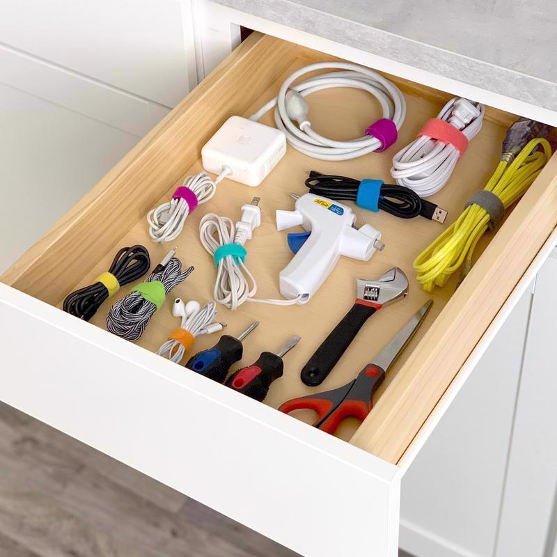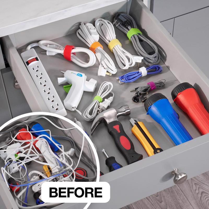 Our mouths water when we see a delicious plate of pasta. But we cry our eyes out when we see a drawer full of cable spaghetti. Quickly go from tangled to tidy with our self-gripping cable ties. They are perfect for organizing your cords, cables, wires and more.