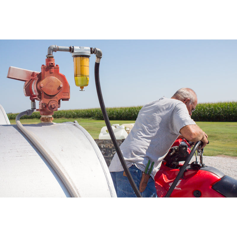 US-made Water absorbing bowl fuel filter with 1 in. NPT top cap removes water from gasoline and diesel fuel. 17 micron filtration. Water-absorbing polymers trap water, restricting fuel flow when it is time to replace the element. May be used by itself or in combination with a No. 495 fuel filter for added protection against microscopic particle contamination.