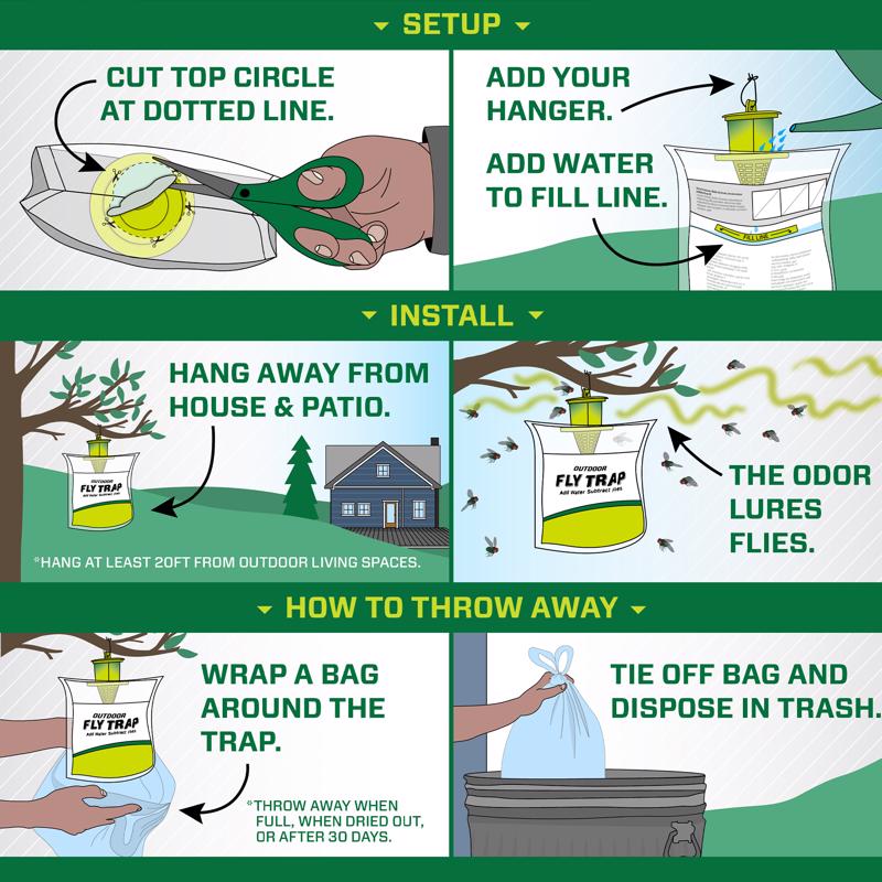 RESCUE! Big Bag Fly Trap has twice the capacity of our Disposable Fly Trap, catching flies in bulk in areas with large fly populations, such as barns, stables, and animal pens.