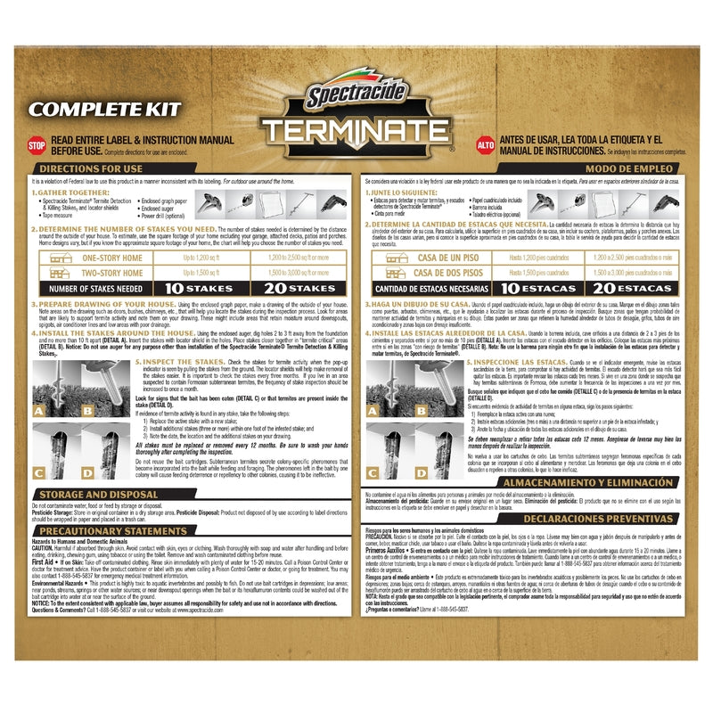 Spectracide Terminate Termite Detection & Killing Stakes2 are do-it-yourself termite bait stakes available to consumers. The stakes have a pop-up and an easy-to-find locator shields that make it easier for regular inspection.