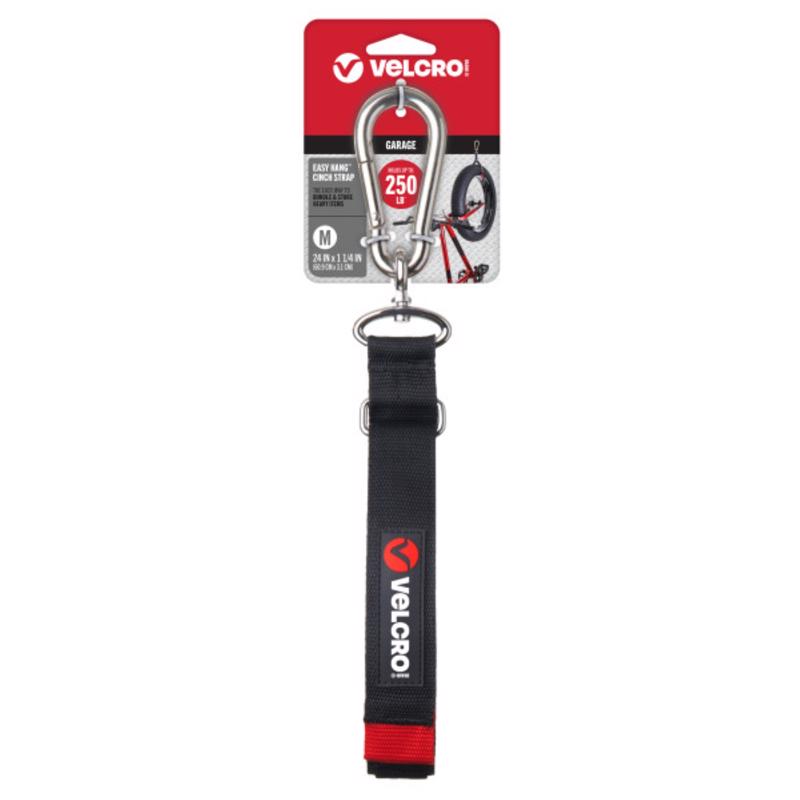Heavy items are easy to organize and store with VELCRO Brand Cinch straps. With super strong webbing that cinches securely closed, you can hang things up to 250 pounds within easy reach. Easy to store and organize.