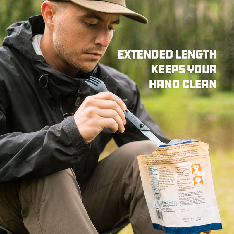 The ultimate in shape-shifting, The Switch Spork stores compact but transforms into a dedicated spoon, fork and knife or telescopes together to form an extra-long utensil ideal for deep walled containers. Whether hiking in the Cascades, picnicking at the beach or fueling up at the office UCO sporks make out-of-home meals more enjoyable.