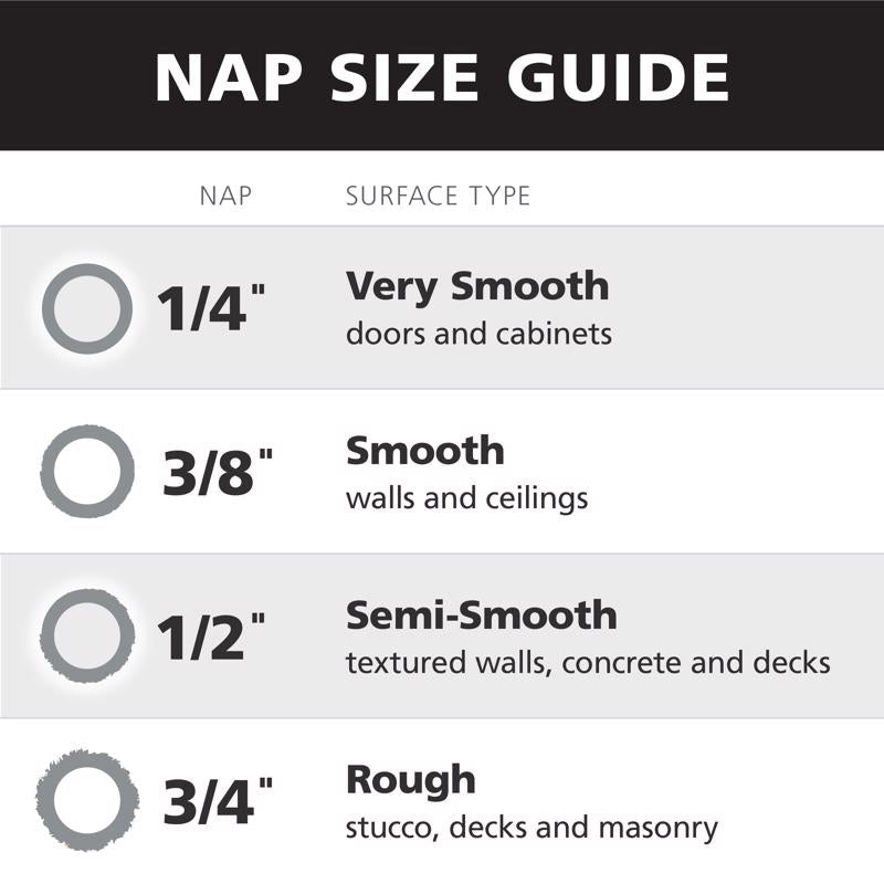 High density polyester fabric for greater coverage and durability. Full body fabric eliminates matting and spattering. Ideal for use with flat, eggshell and satin finishes.