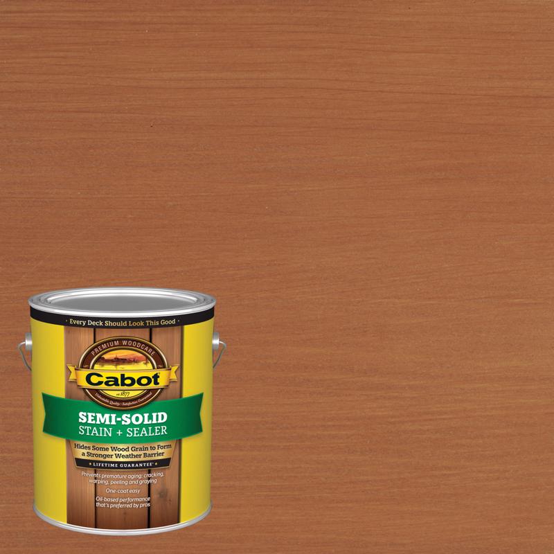 Cabot Semi-Solid Stain + Sealer hides some wood grain to form a stronger weather barrier. Available in 100 colors, both classic or modern and on-trend, this stain is made to last. Choose a one-coat finish that will not show brush marks and resists lapping, peeling, scuffs and scratches. Our advanced waterproofing formula creates a mold- & mildew-resistant finish that stands up to time and style.