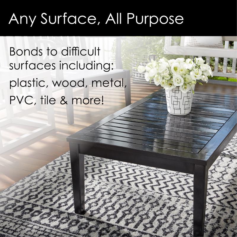 - Recommended Surface: Wood, Metal, Wicker, Plastic, Glass, Plaster/Ceramic, PVC, Hard Vinyl, Tile, Wrought Iron, Masonry and Laminate