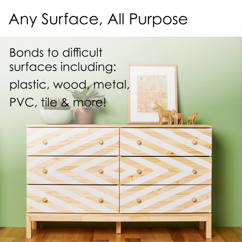 A premium product that bonds to difficult surfaces such as plastics and ready-to-assemble furniture without sanding or priming. This product provides maximum rust protection for all outdoor projects.
