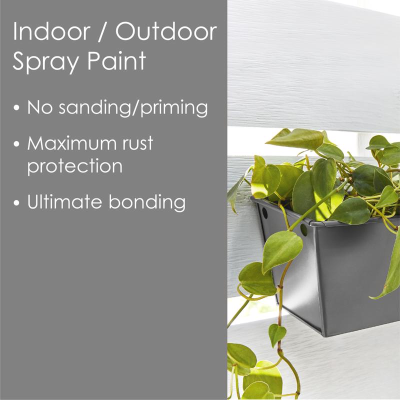 Krylon Fusion All-In-One is a premium product that bonds with 5X Stronger Adhesion to difficult surfaces such as plastics and ready-to-assemble furniture without sanding or priming. This product provides maximum rust protection for all outdoor projects and offers a broad color palette with multiple finishes and sheens for indoors and out.