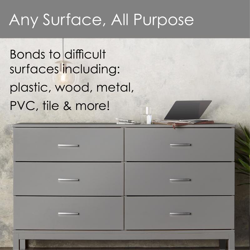 - Recommended Surface: Wood, Metal, Wicker, Plastic, Glass, Plaster/Ceramic, PVC, Hard Vinyl, Tile, Wrought Iron, Masonry and Laminate