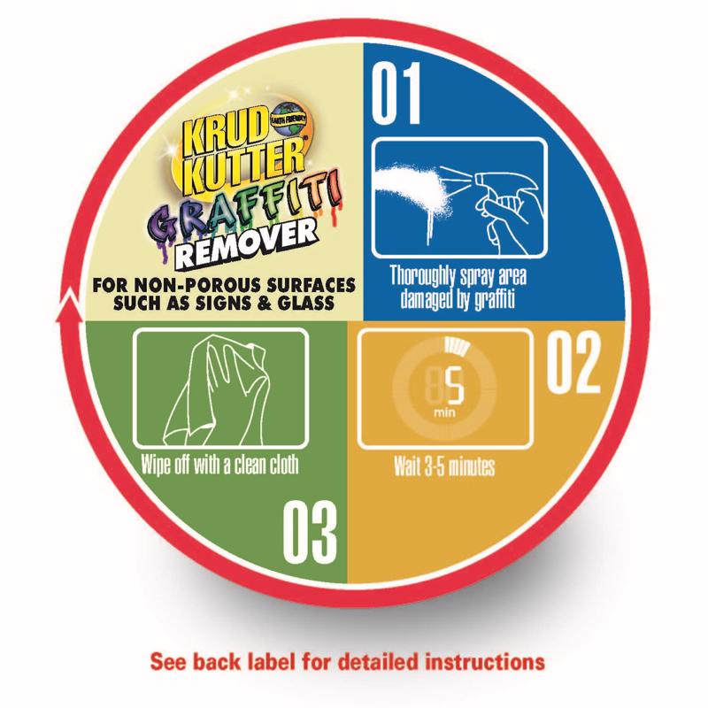 Krud Kutter Graffiti Remover is designed to remove a variety of stains and marks in minutes with a powerful, non-toxic formula. This easily remove unwanted acrylic, enamel, primer, sealers, permanent marker, lipstick, crayon and more.