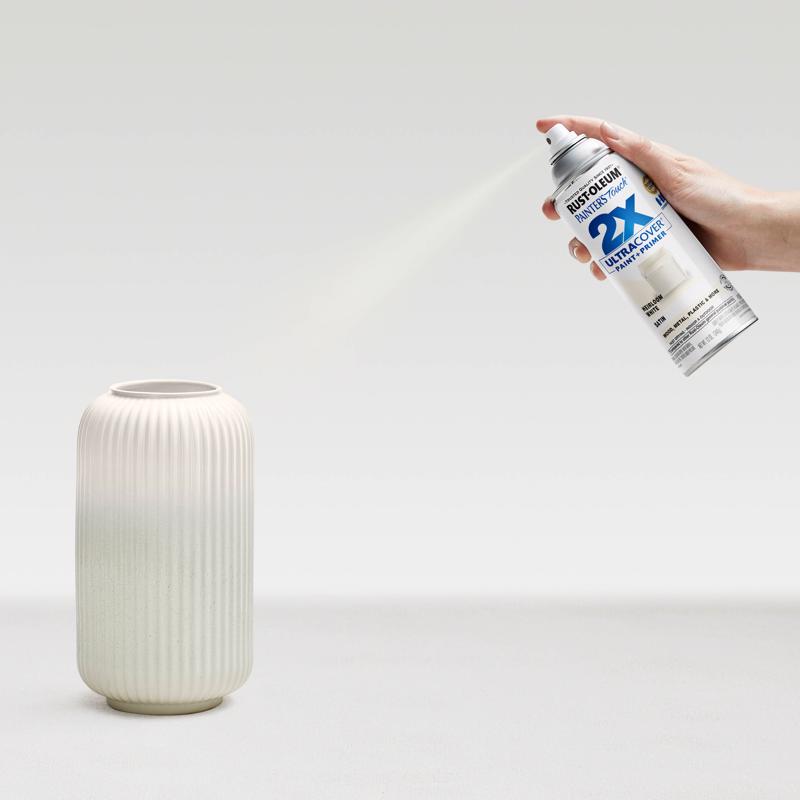 Rust-Oleum painter's touch 2X ultra cover satin spray paint allows for a simple refresh or coat on your interior or exterior items with ultimate coverage. Double cover technology saves time and energy to complete your projects faster. Any-angle spray with comfort tip reduces finger fatigue with easy application from any direction. To prevent wrinkling, spray light coats within an hour, then let dry for 48 hours before applying a topcoat.