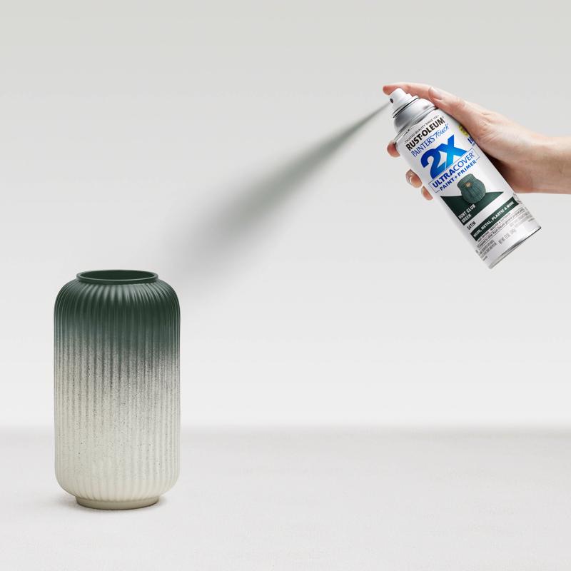 Rust-Oleum painter's touch 2X ultra cover satin spray paint allows for a simple refresh or coat on your interior or exterior items with ultimate coverage. Double cover technology saves time and energy to complete your projects faster. Any-angle spray with comfort tip reduces finger fatigue with easy application from any direction. To prevent wrinkling, spray light coats within an hour, then let dry for 48 hours before applying a topcoat.