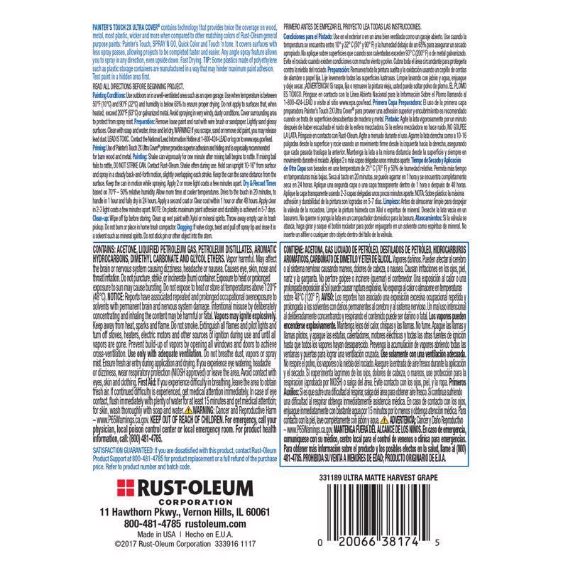 Rust-Oleum Painter's Touch 2X Ultra Cover Ultra Matte Harvest Grape Paint+Primer Spray Paint 12 oz (331189)