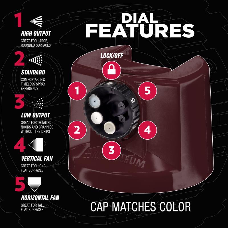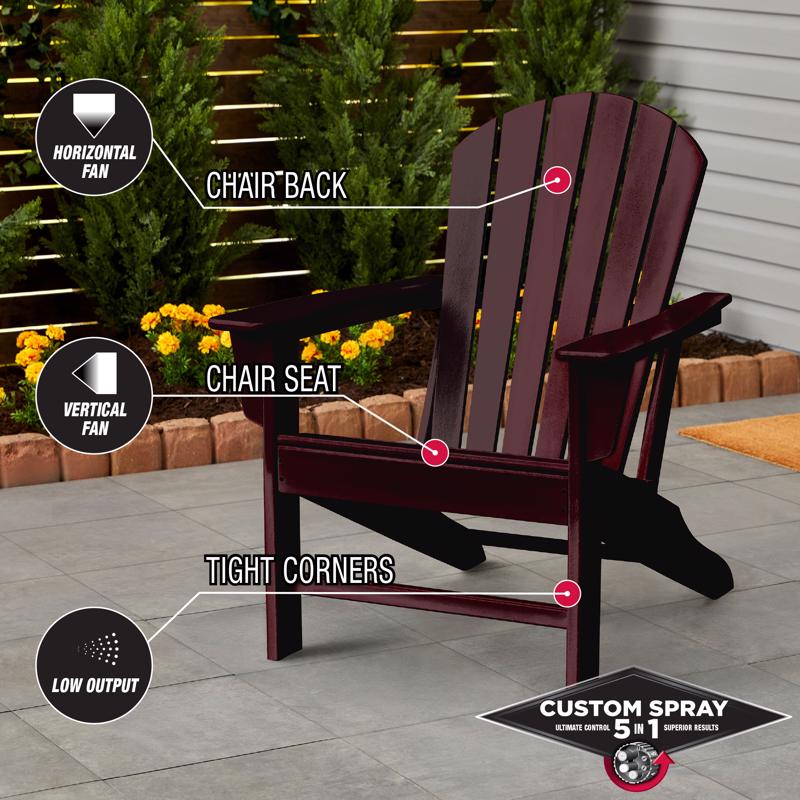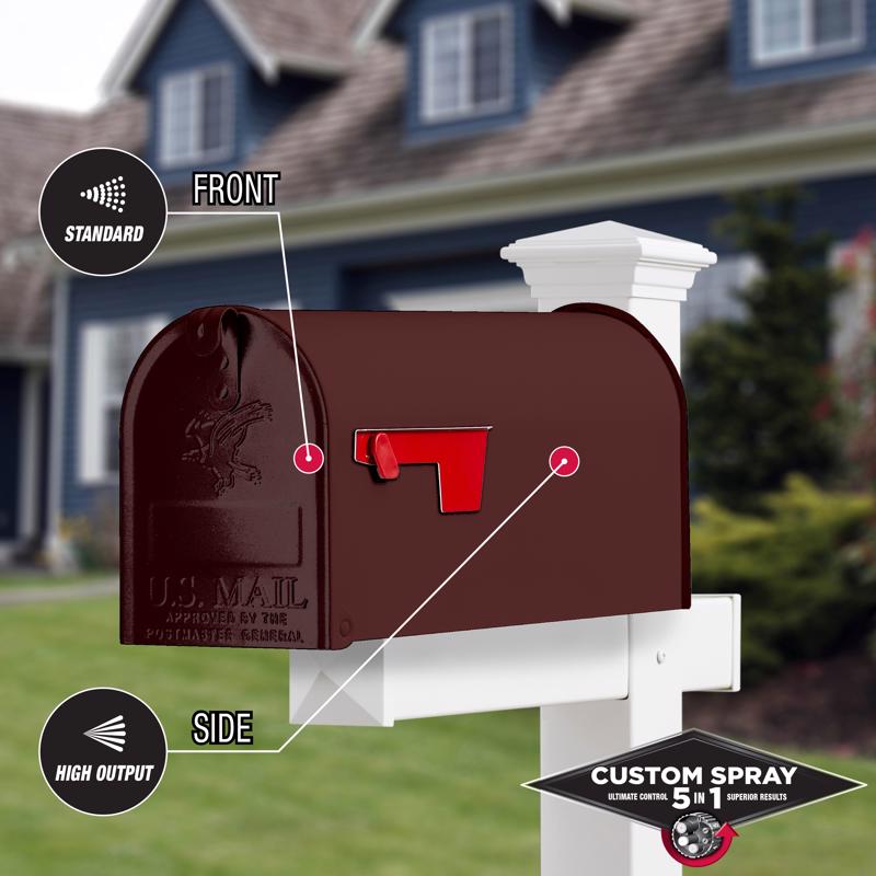 Rust-Oleum Stops Rust Protective Enamel with Custom Spray 5-in-1 lets you choose from five spray patterns with a twist of the dial. Use the high output spray for large curved surfaces, standard for a traditional experience, low output for details and corn