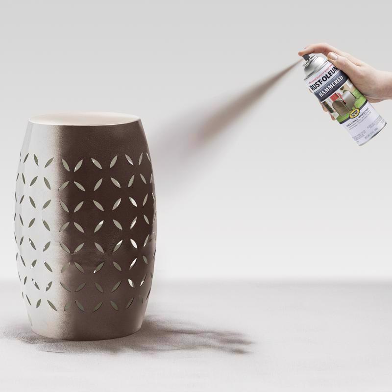 Want to paint a dinged up, rusty surface - without sanding or priming. No problem. Rust-Oleum Hammered Spray Paint adheres directly to rust and instantly hides flaws and imperfections with its modern, glossy, hammered finish. Perfect for old wheelbarrows, wheel rims, patio furniture, railings and more.