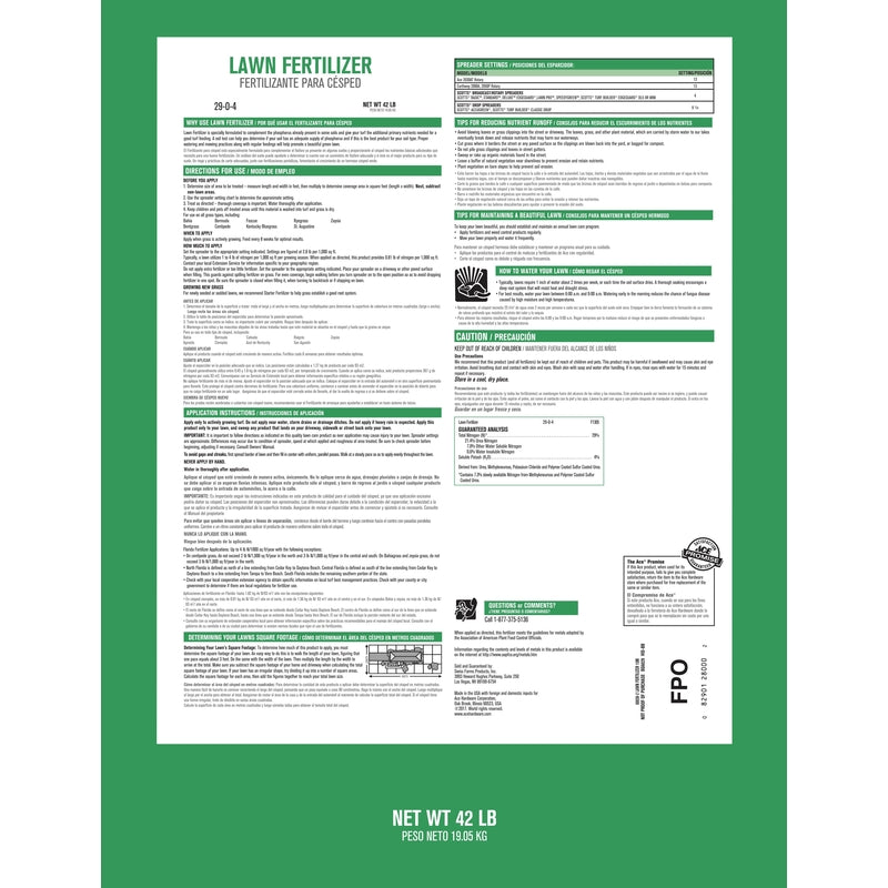 Ace Lawn Fertilizer feeds your lawn in one easy step. This product builds strong, deep roots to protect from drought and heat, and provides controlled release feeding up to 8 weeks. Formulated for quick greening. For optimal results, feed your lawn every 8 weeks when grass is actively growing. Carries the Ace Promise satisfaction guarantee.