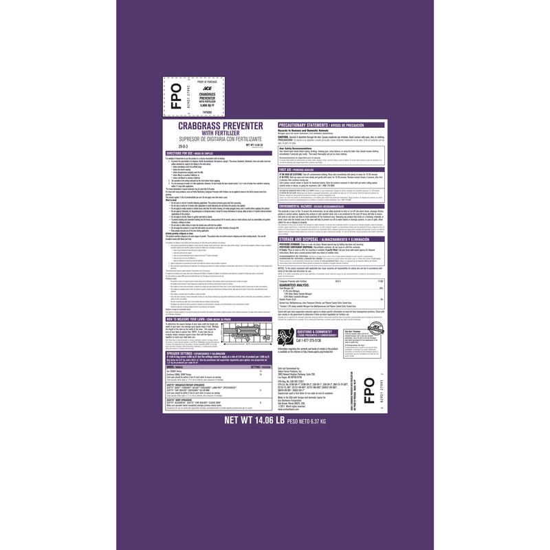 Ace Crabgrass Preventer Lawn Fertilizer For All Grasses 5000 sq ft (60008)
