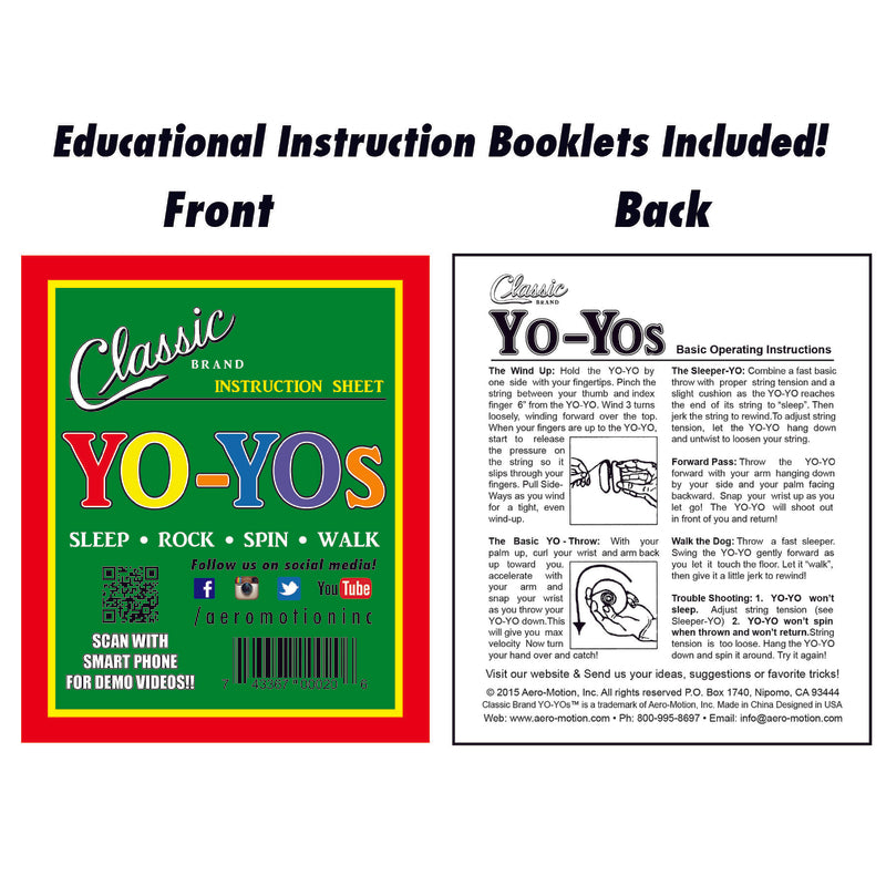 Aero-Motion's Hardwood Yo-Yo is high quality. Our line of Hardwood Yo-Yos come with instructional manuals including the scientific principles of Rotational Energy, Friction, and Gravity.