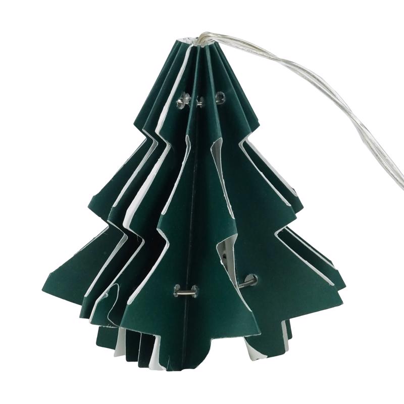 Illuminate your holiday celebrations with our charming Paper Christmas Tree Fairy String Lights, these delightful lights feature a total length of 75 in. and come adorned with 10 warm white LEDs, casting a soft and inviting glow that enhances the festive atmosphere. Compact in size at 3X3X3 in. each light is designed to resemble a whimsical tree, adding a playful touch to your decor. The included remote control allows for effortless operation, so you can easily switch them on and off or adjust the settings from a distance. Powered by 3 AA batteries, these enchanting lights are perfect for draping over trees, mantels, or wrapping around banisters, making them a must-have addition to your holiday decor.