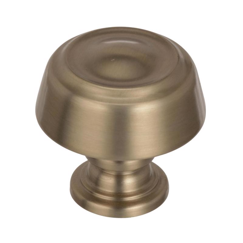 The Amerock Kane 1-3/16 in (30 mm) Diameter Knob is finished in Golden Champagne. Timeless beauty complements the utilitarian design in the Kane collection, creating a classic and understated look that never goes out of style. Warm and inviting without being brassy and featuring hints of silver in reflective light, our Golden Champagne finish elevates designs with enviable versatility. Use for a soft and elegant touch on lighter finishes or as a contrasting pop against darker finishes.