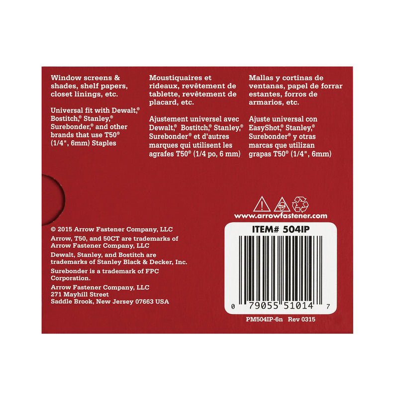 Arrow T50 3/8 in. W X 1/4 in. L 18 Ga. Flat Crown Heavy Duty Staples 5000 pk (504IP)