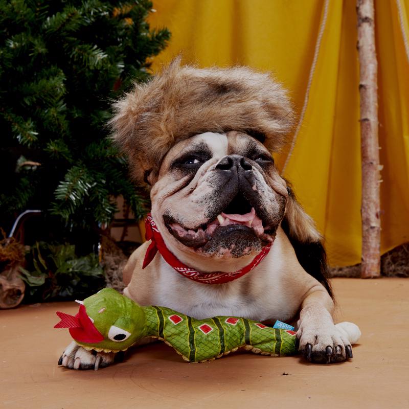 This rattlesnake dog toy is a reptile your dog will wanna wrastle. Made with a crazy crinkle body and three squeakers, your pup will definitely know when Tony's near. Plus, his whip-and-flip body makes him an exciting toy to snatch. The only bite to worry about is your dog's.
