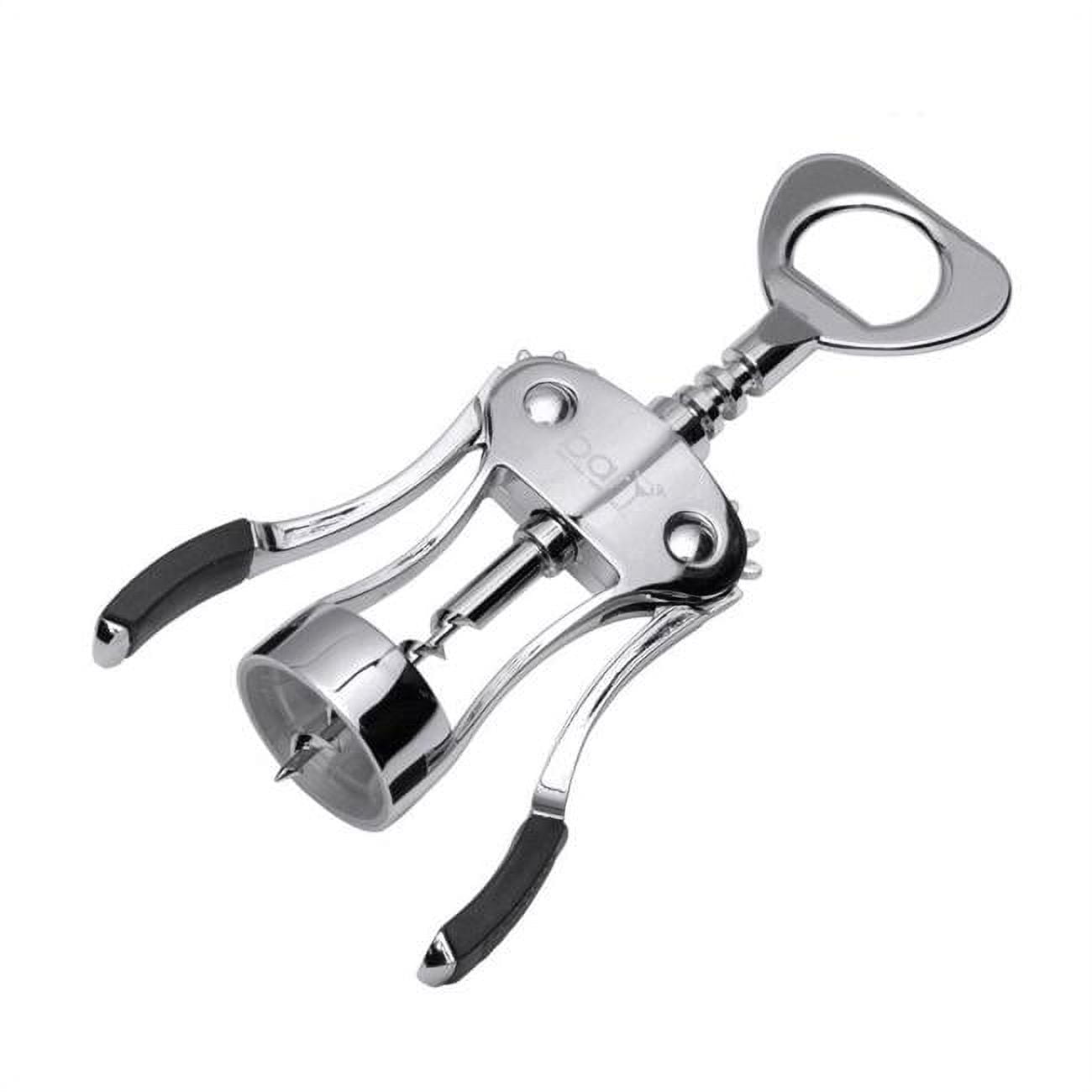 This classic bottle opener and corkscrew is very easy to grasp and effortless to turn thanks to its ergomomical design. Position bottle grip around the neck and twist the corkscrew into the cork. Lower wings to remove cork. Enjoy.