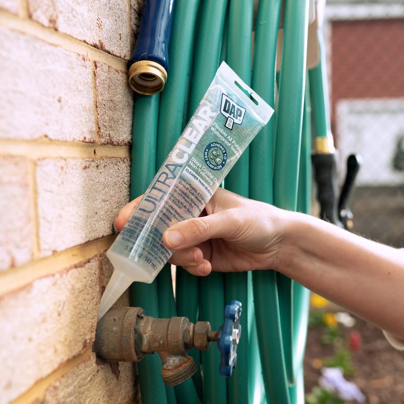DAP Ultra Clear Flexible All Purpose Waterproof Sealant, ultra elastic, ultra clear sealant for sealing and patching a wide variety of surfaces and projects. Use it to seal out air, water, and moisture for a durable, 100% waterproof and weatherproof seal. Sealant does not yellow and is clearer than silicone.