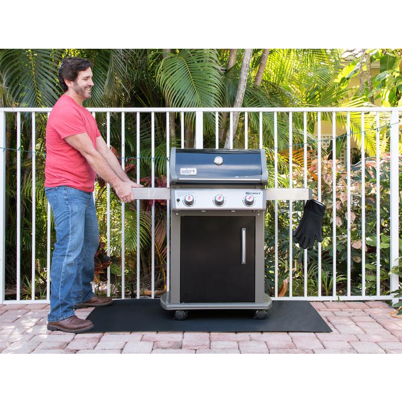 The Ultimate heavy duty patio protection Grill Mat used for all grills to protect against any droppings and debris that may fall off the hot grill. Made from Recycled ethylene propylene diene monomer (EPDM) rubber. The Grill Mat (36 in. x 48 in.) from Earth Edge is BBQ accessory that offer retailers the perfect, summertime, impulse buy product alongside grills.