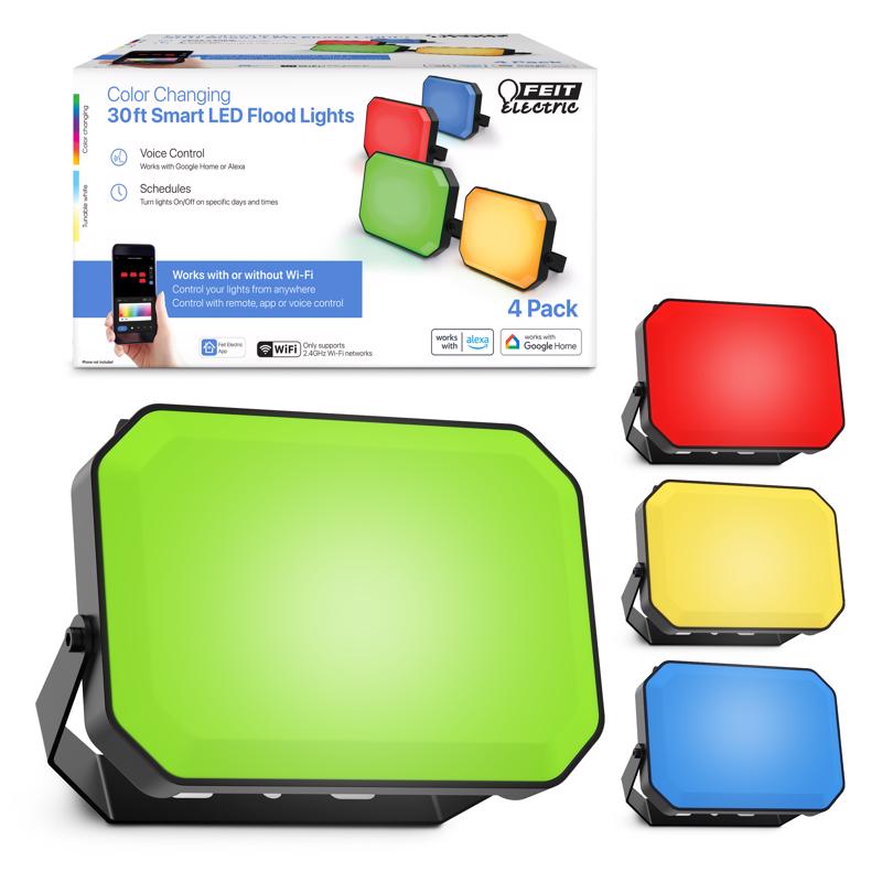 Feit E26 (Medium) Smart-Enabled LED Floodlight Bulb Color Changing 20 Watt Equivalence 4 pk (FLD/RGBW/AG/4)