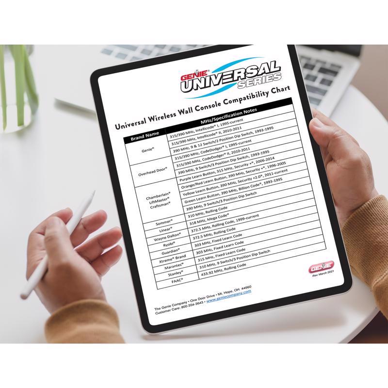- Compatibility: LiftMaster, Chamberlain, Genie, Overhead Door, Wayne Dalton, Linear, Marantec, plus more