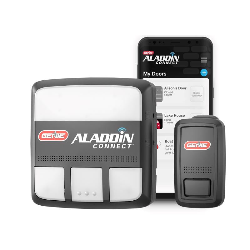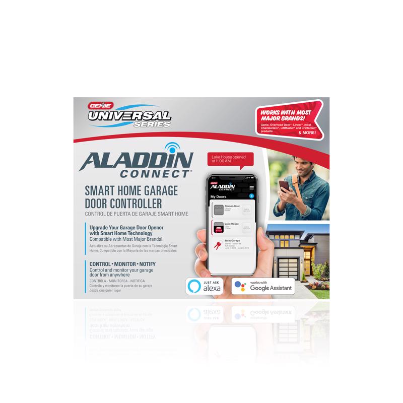 For many homeowners, the garage door is the most used entry point to the home. Having up-to-date information about who is accessing your garage at any given time and being able to operate your garage door from your smart device is the ultimate convenience. The Aladdin Connect smart home garage door controller always gives you power over your home by monitoring your garage door's status. If your garage door is opening or closing, Aladdin Connect will alert you. You'll have access to a history of use by each opener along with when the door was used. Aladdin Connects Security Advantage is the sensor attached to the garage door that serves as a motion detector. Aladdin Connect Smart Phone Connectivity is now even smarter, offering new time-based features. These include creating a virtual key, setting a close time for your door and setting a time frame within which to close your door. With these new features, you can provide temporary or permanent access to friends, relatives or service repair workers. Choose to provide visitors with their own access code or simply open the door with your smart device when an expected visitor notifies you of their arrival. You can also set your door to automatically close at whatever time you choose. The Genie Aladdin Connect smartphone connectivity has a completely free smartphone app that takes only a couple minutes to set up.